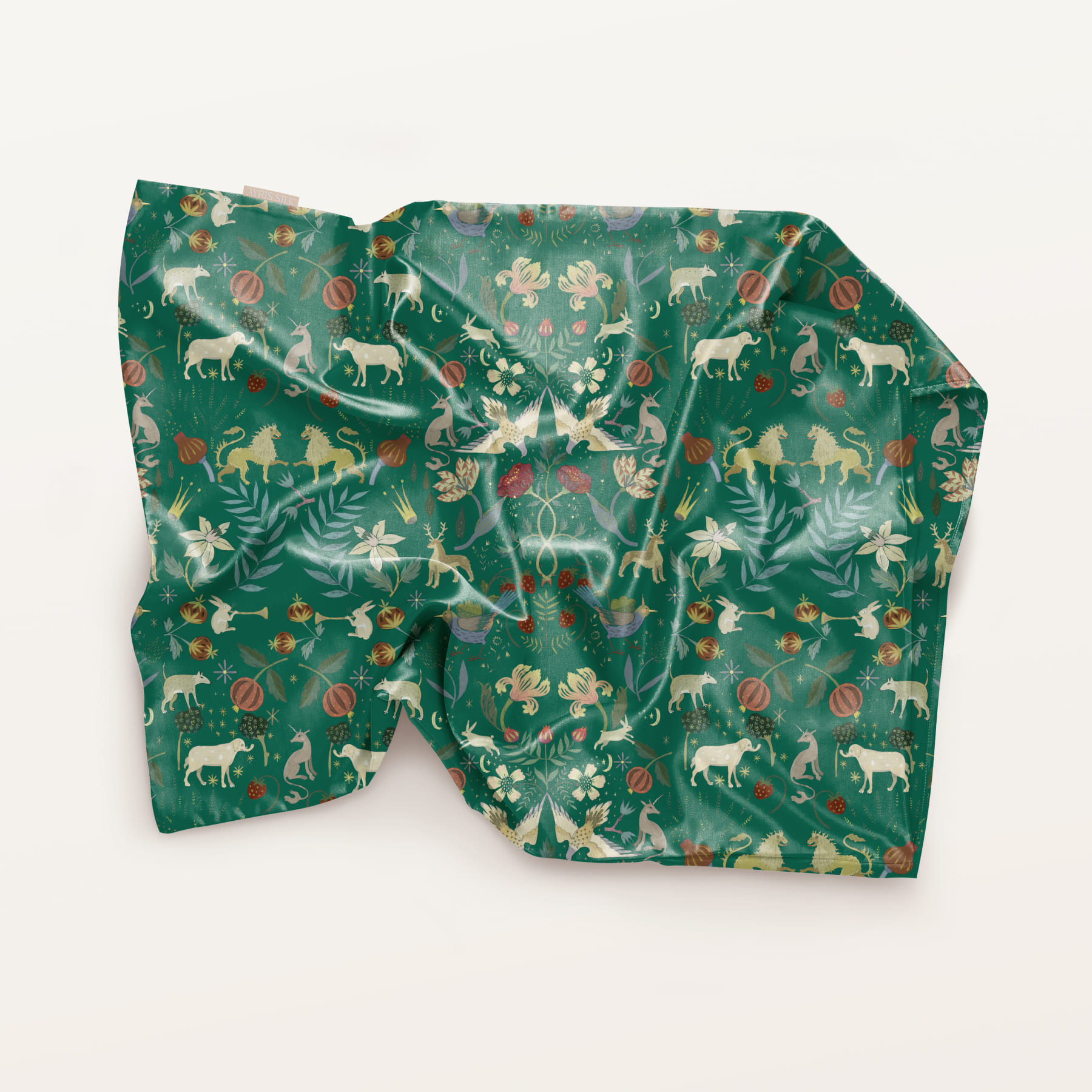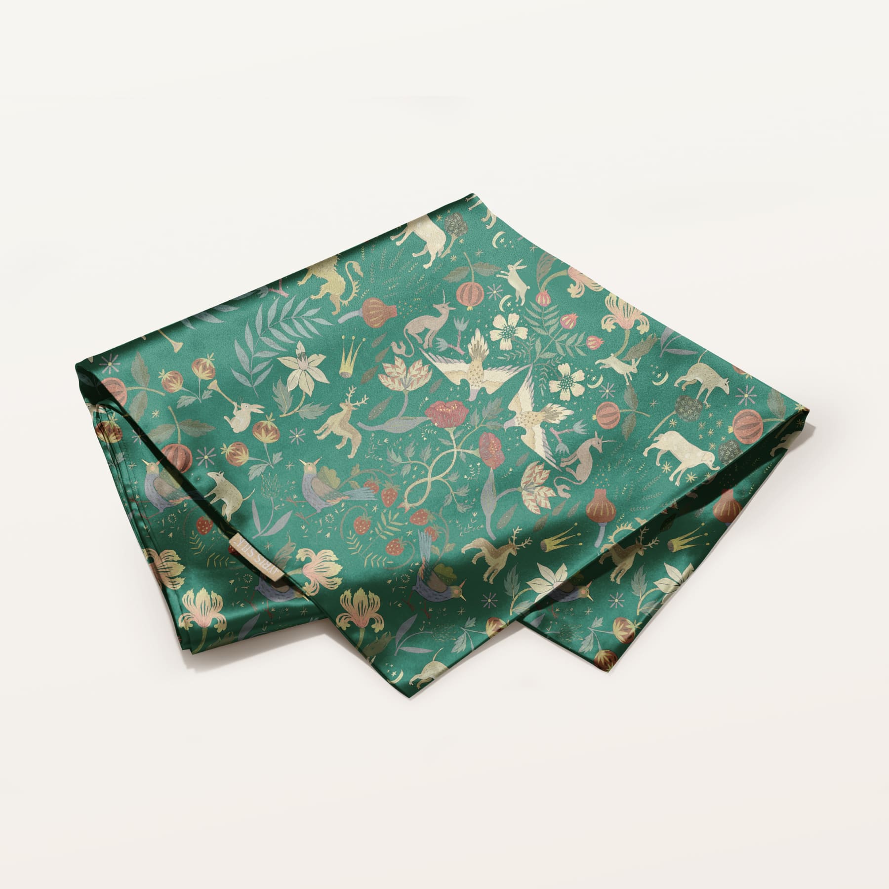 Наволочка 50х70 из фирменного шёлка сказочный лес. изумрудный