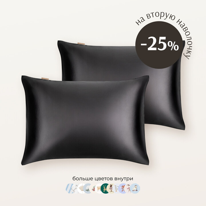 Наволочка 50х70 из фирменного шёлка глубокий черный